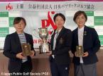 女子シニアは、通算17オーバー、161で並んだ武田妙子選手=シード・ウィンザーパーク=と、石黒節子選手=新潟サンライズ=のプレーオフとなり、1ホール目をパーとした東日本3連覇の武田選手が、悲願の全日本初優勝を飾った。