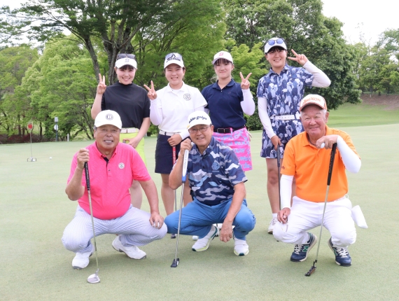 女子アマ選手とグランドシニア選手が仲良く記念撮影!