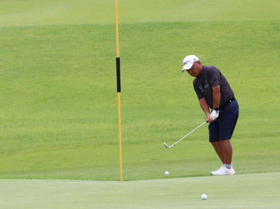 雨は最終日も朝から降り続き、ようやく晴れ間が見え始めたのは最終組が後半のハーフ終盤に差し掛かるころ。最終組の中で唯一人68とスコアを伸ばした亥飼選手が、2位に4打差をつけ4年ぶり2回目の優勝を果たしました。