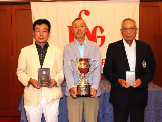 左から2位の布施政勝選手、長谷川壽彦選手、3位の林三郎選手