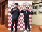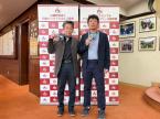 (写真は優勝した伊澤秀憲選手(左)と当協会の島田専務理事)