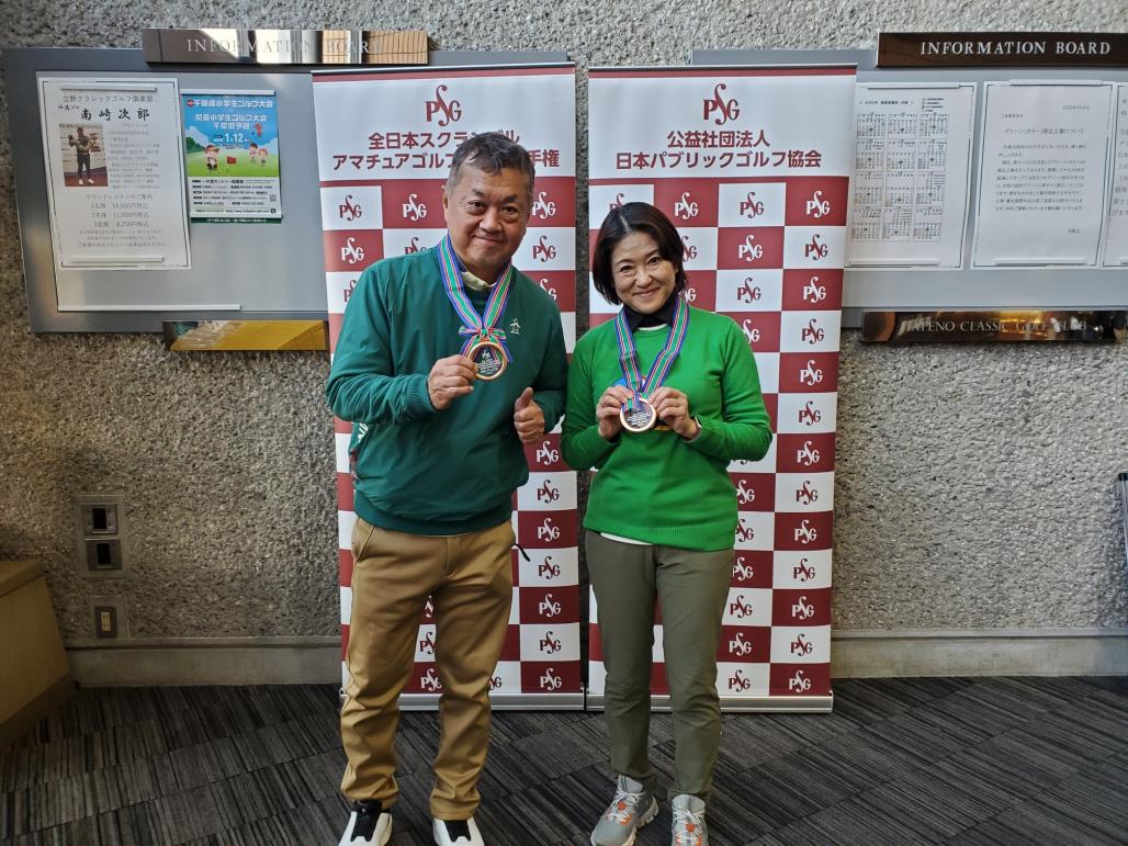 女子シニアは、通算17オーバー、161で並んだ武田妙子選手=シード・ウィンザーパーク=と、石黒節子選手=新潟サンライズ=のプレーオフとなり、1ホール目をパーとした東日本3連覇の武田選手が、悲願の全日本初優勝を飾った。